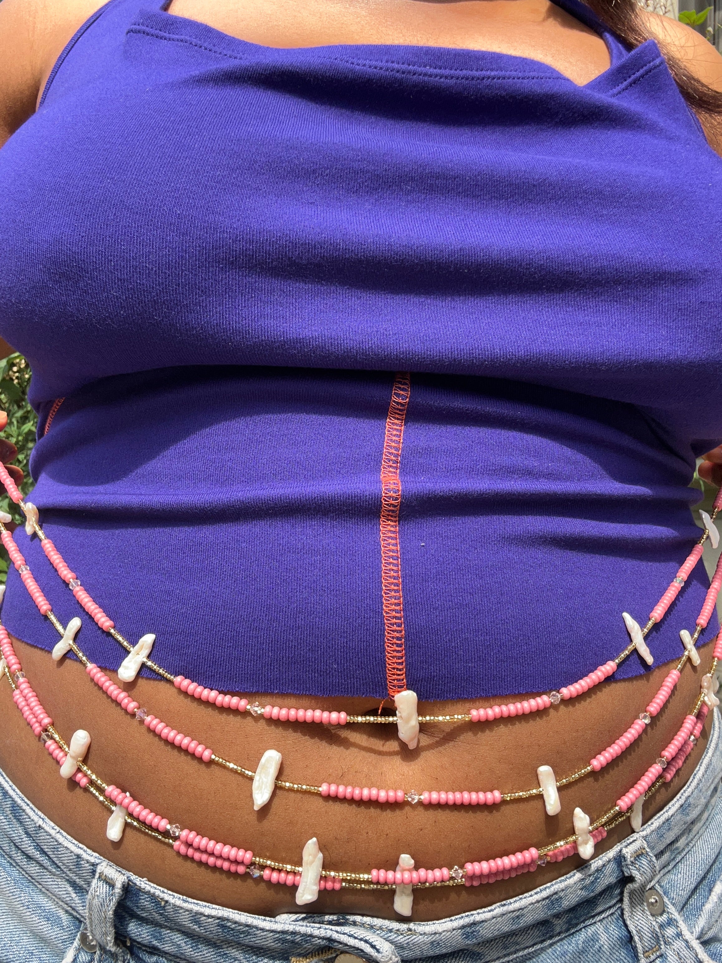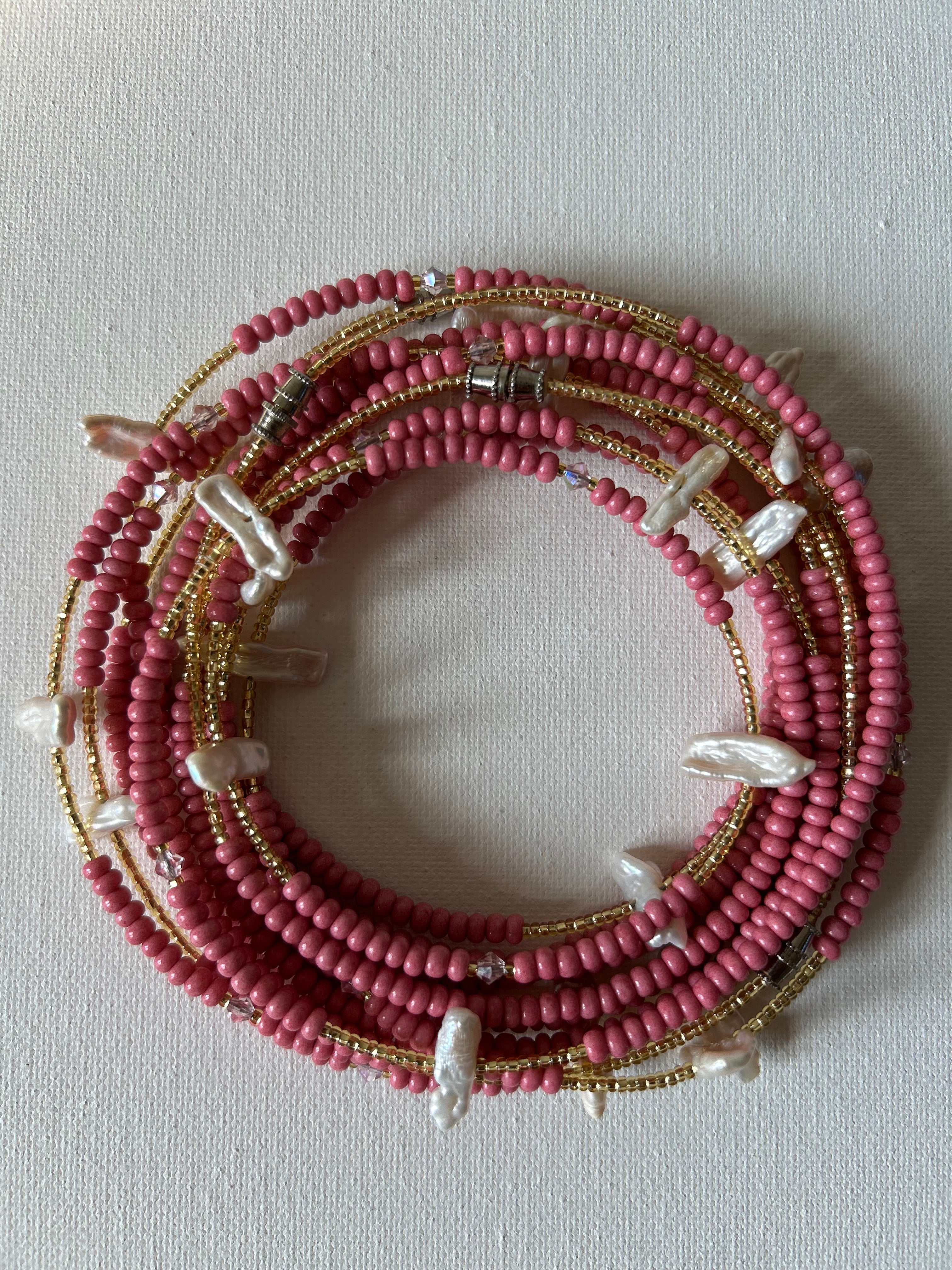 Soft, sacred, and feminine. Bliss is handcrafted with pink beads and baroque pearl stones—designed to honor your beauty, confidence, and divine energy. The pink reflects self-love and softness, while the pearls symbolize grace in every curve.